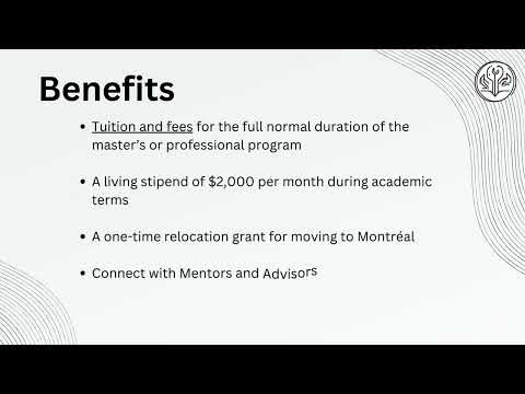 Applications are now open! Up to 30 full scholarships and 100 entrance awards will be offered for Summer / Fall 2025 admission to master’s or professional studies at McGill. Start your application today.